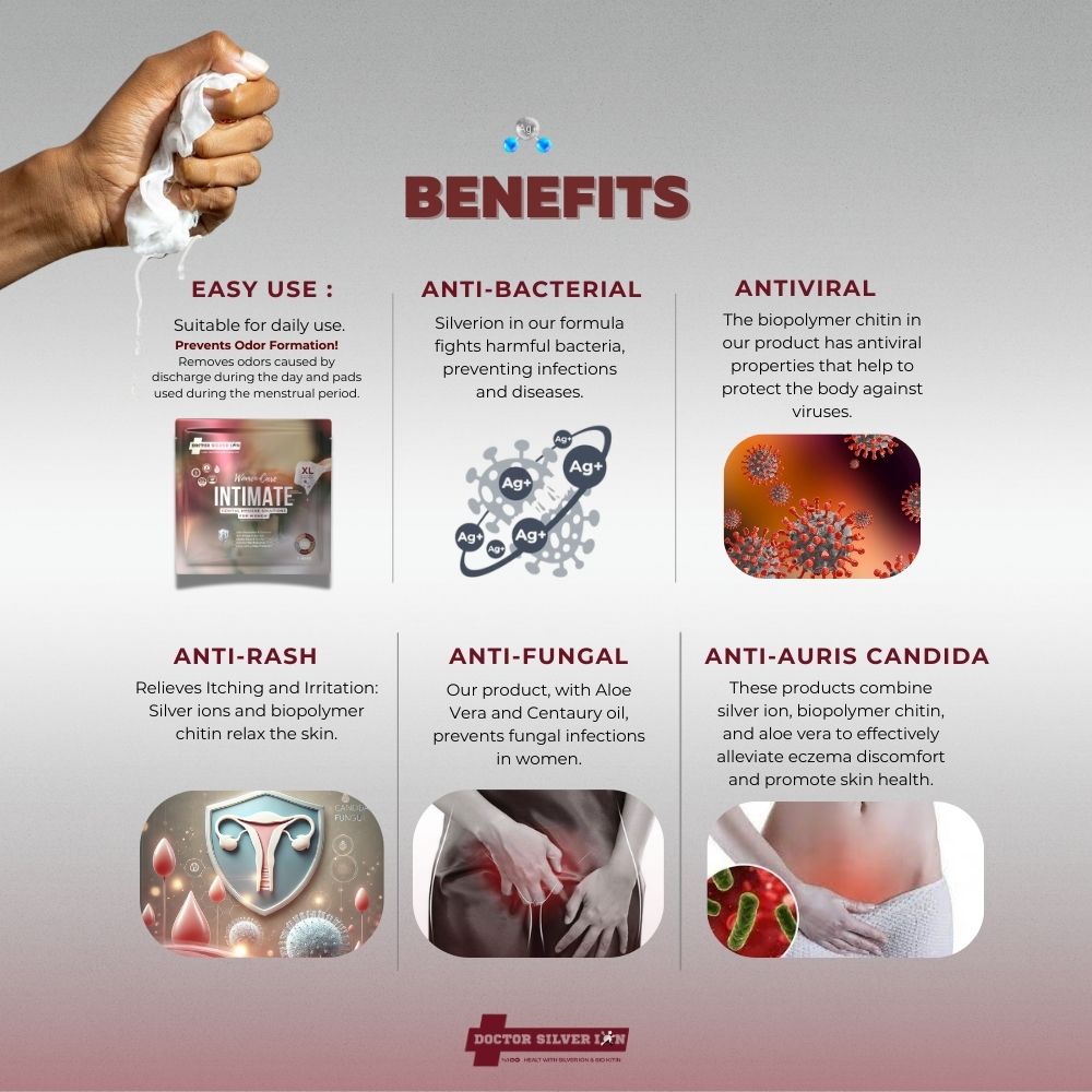 Hijyen ve Konforu Teşvik Eder: Gümüş iyonları antibakteriyel faydalar sağlayarak bakterileri azaltır ve doğal cilt yenilenmesini destekleyerek bölgenin taze ve temiz kalmasını sağlar.