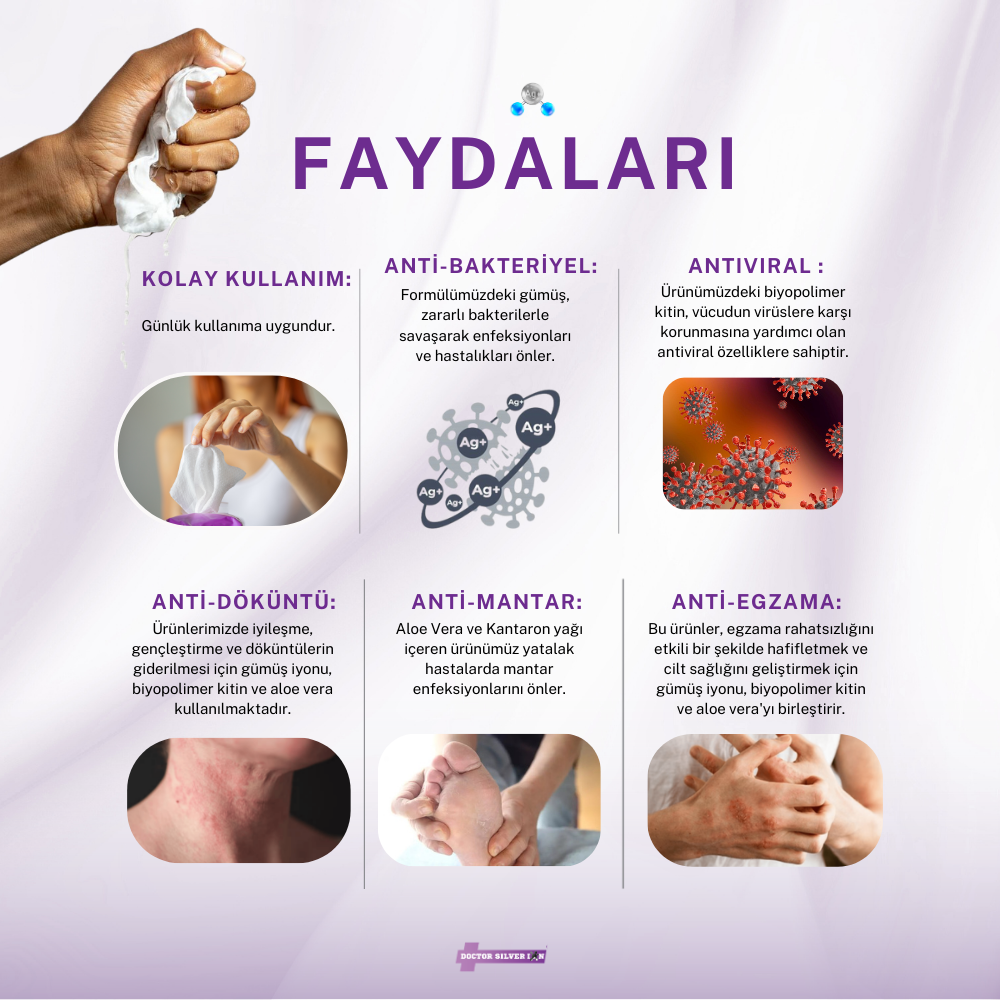 Etkili ve Hijyenik Temizlik: Gümüş iyonları, bakterileri hedef alarak etkili bir şekilde ortadan kaldırır, temizlik sağlar ve enfeksiyon riskini azaltır.